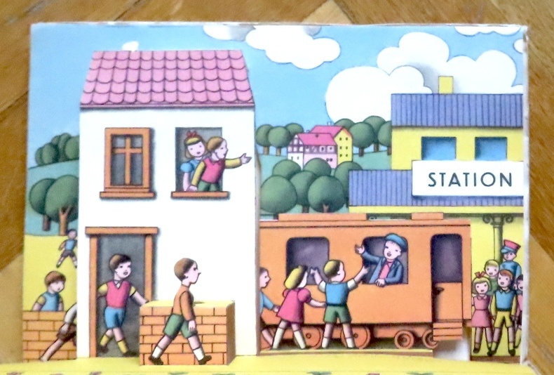 Hemma, 1969. Pop-up au format in-12, couverture légèrement frottée. 4 tableaux en pop-up, le dernier avec petite réparation au scotch.